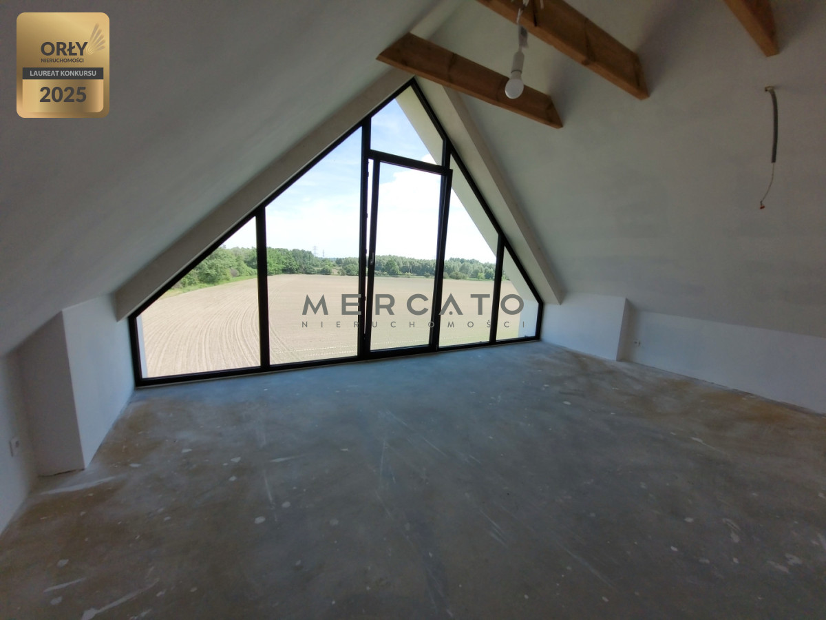 - Piętro: cztery pokoje, w tym sypialnia główna z garderobą i prywatną łazienką, dodatkowa łazienka i pralnia.