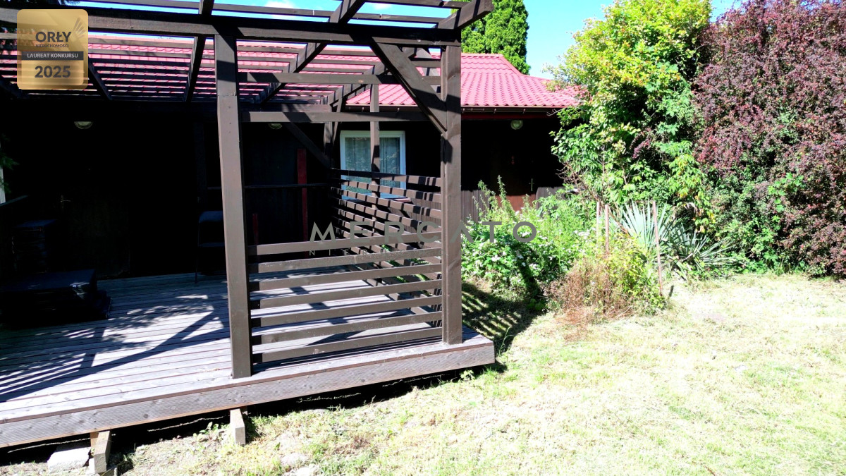 Dodatkowym atutem jest altanka wśród drzew, która tworzy idealne miejsce na spotkania towarzyskie i rodzinne w otoczeniu natury.