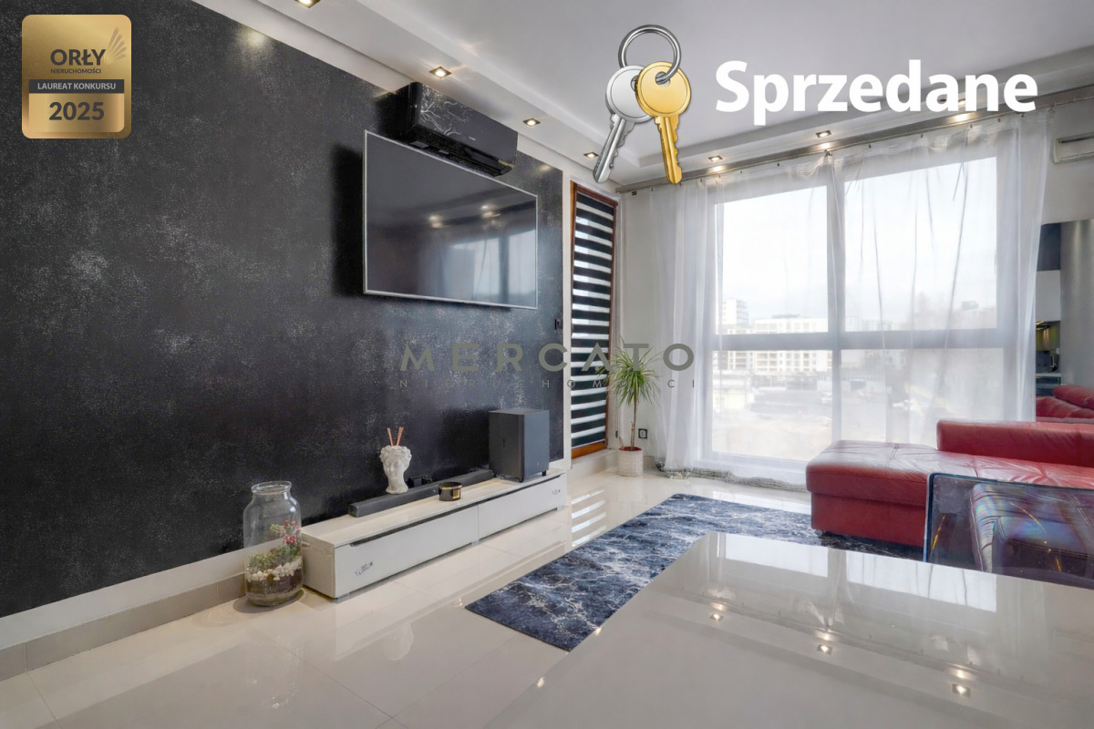 Funkcjonalna, przestronna i jasna kuchnia, zaopatrzona w zabudowany na wymiar, markowy sprzęt AGD (czteropalnikowa płyta indukcyjna, piekarnik, zmywarka, kuchenka mikrofalowa, lodówka). W salonie znajdują się: podświetlany sufit, duża szafka RTV, oraz stół. Wszystko z jednego kompletu, wysokiej klasy w białym połysku.