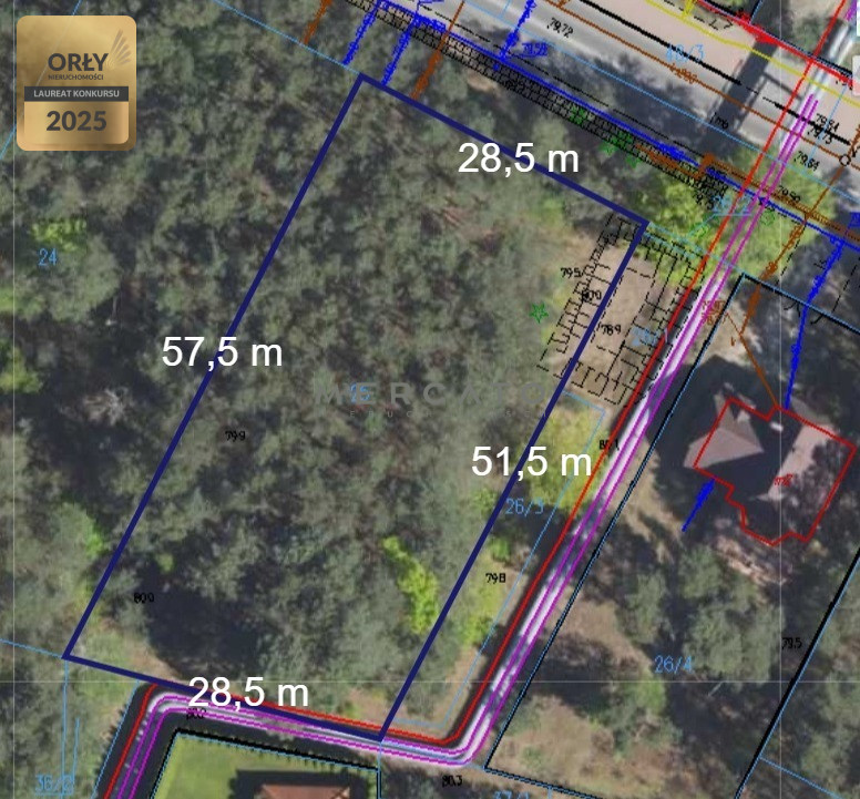 - Wymiary działki: ok. 28,5 m frontu na 57,5 m głębokości.