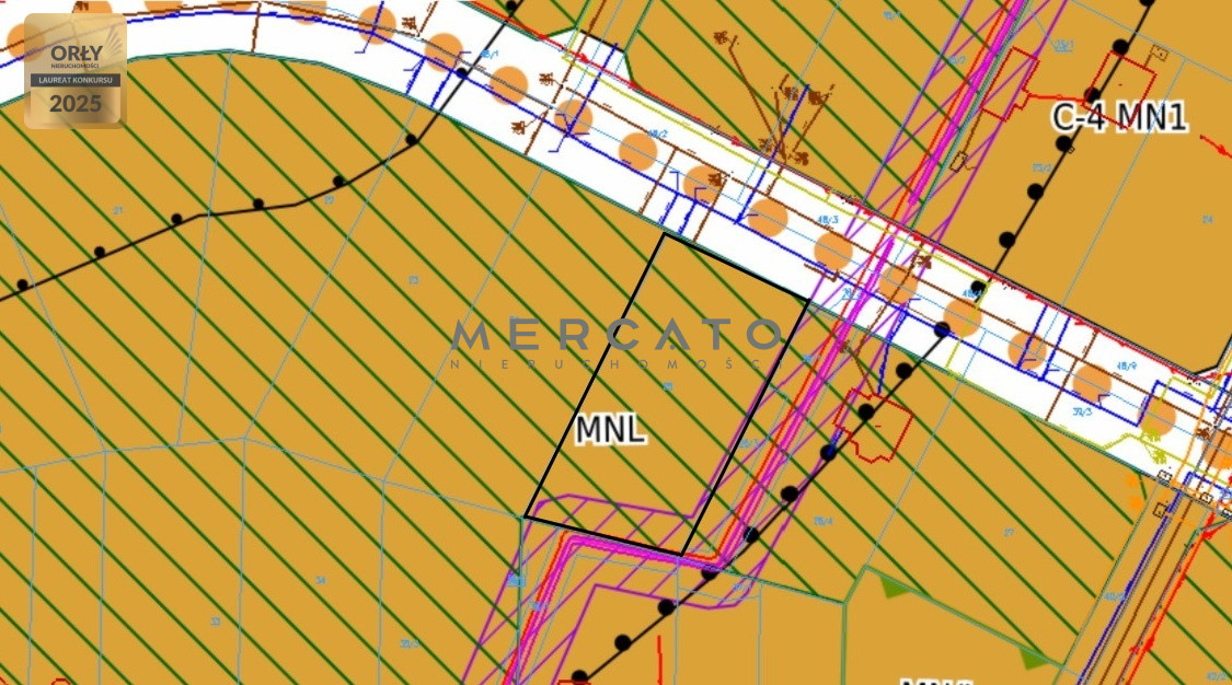 - Grunt objęty jest Miejscowym Planem Zagospodarowania Przestrzennego z oznaczeniem MNL (zabudowa jednorodzinna na działkach leśnych). Plan pozwala na budowę całorocznego domu jednorodzinnego wolnostojącego.