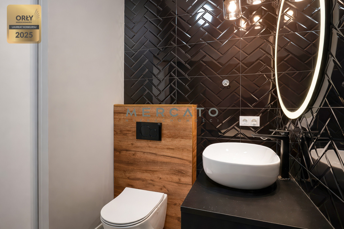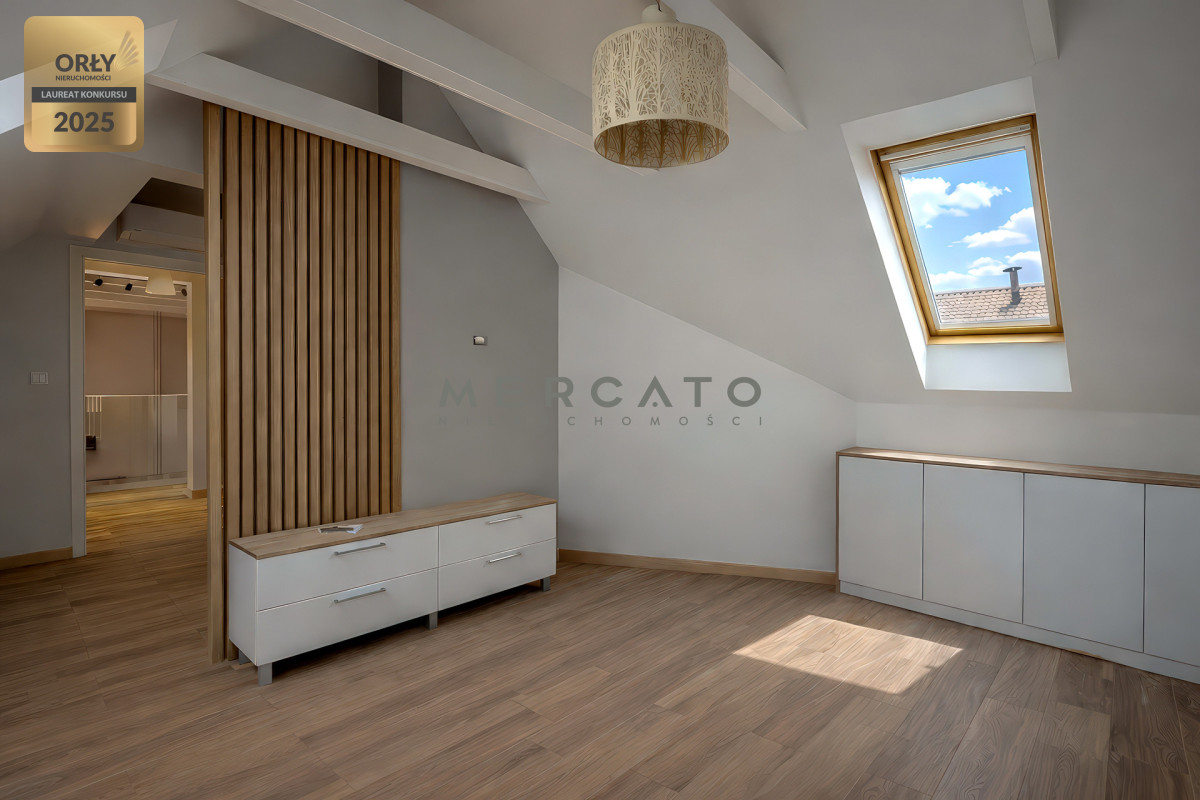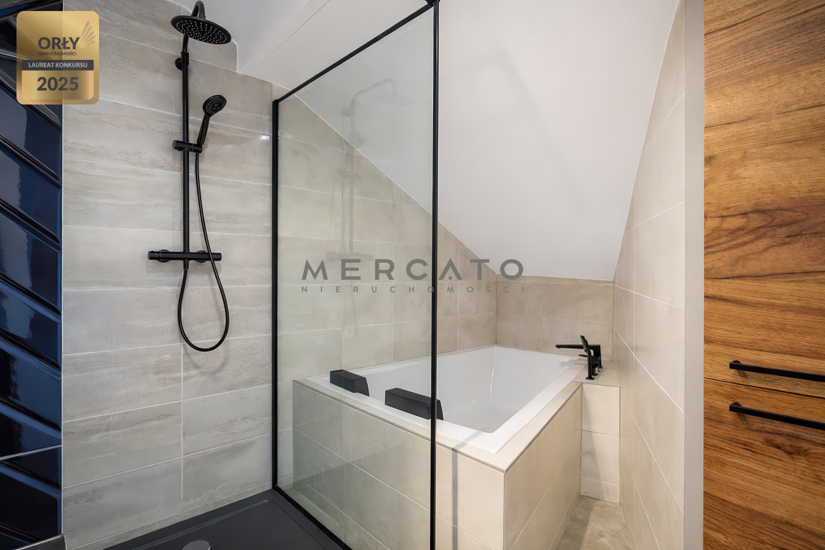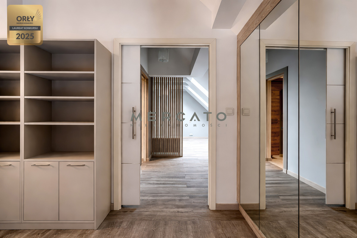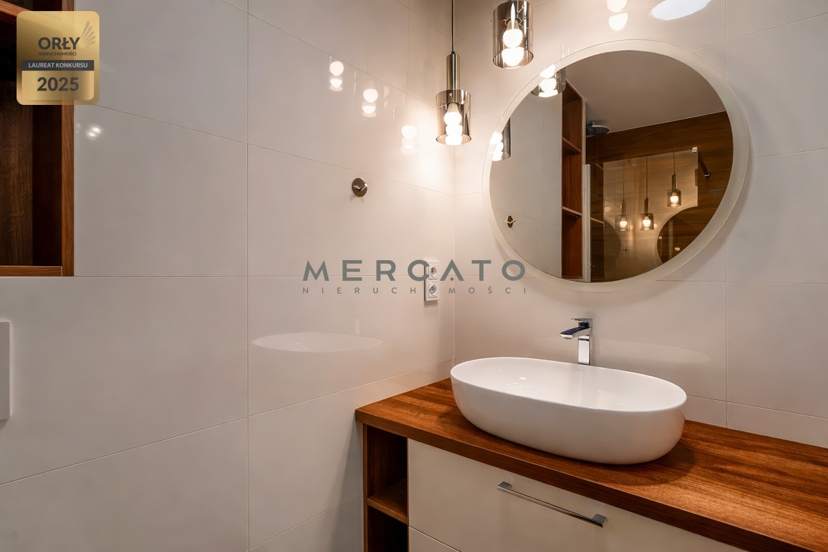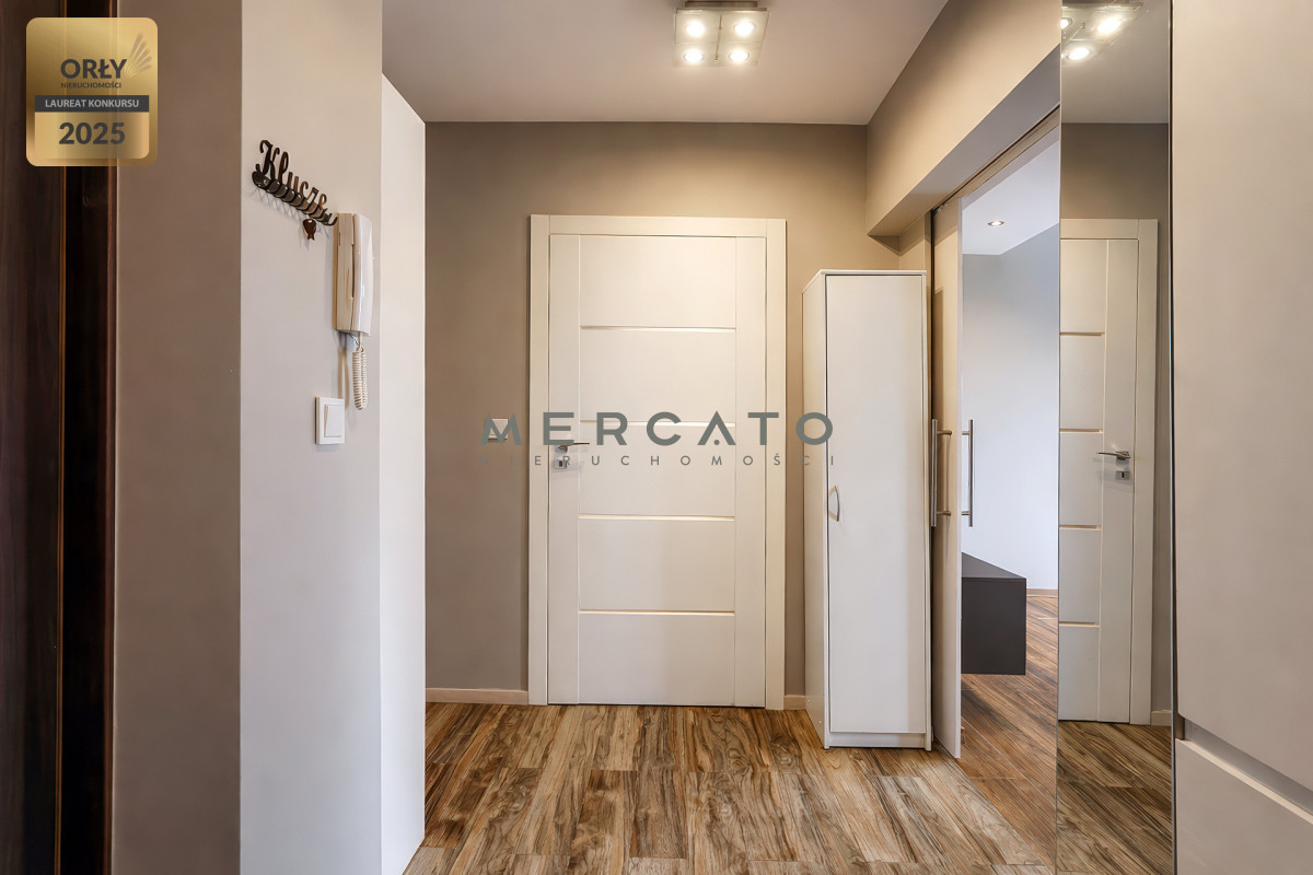 Pierwszy poziom zapewnia przestronny salon z aneksem kuchennym, sypialnię/gabinet, łazienkę oraz balkon. Drugi poziom to przestrzeń z szafami i biblioteczką, sypialnią oraz dodatkowa łazienka z wanną. Mieszkanie posiada klimatyzację.