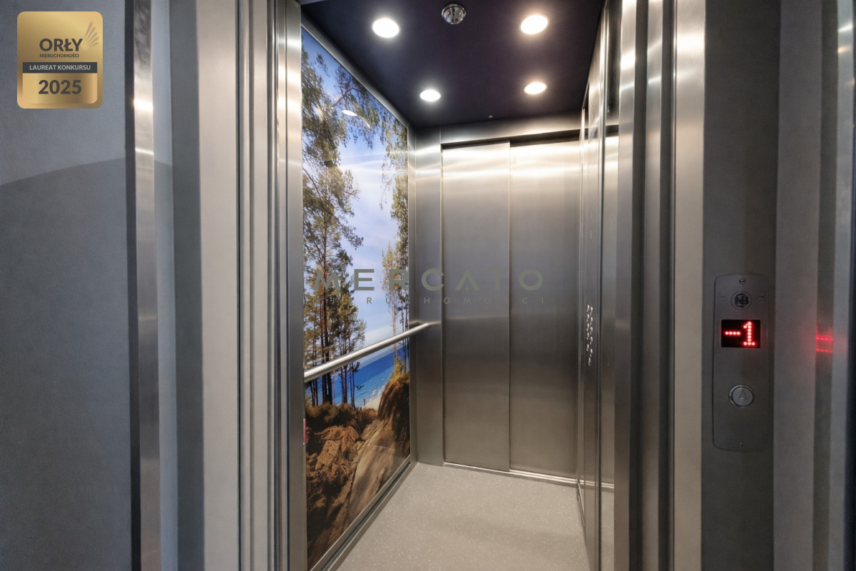 Lokal mieści się na 5. piętrze w 9-piętrowym budynku z windą zjeżdżającą do poziomu 0. To istotne udogodnienie dla rodzin z dziećmi, osób starszych oraz przy codziennym wnoszeniu zakupów czy roweru.